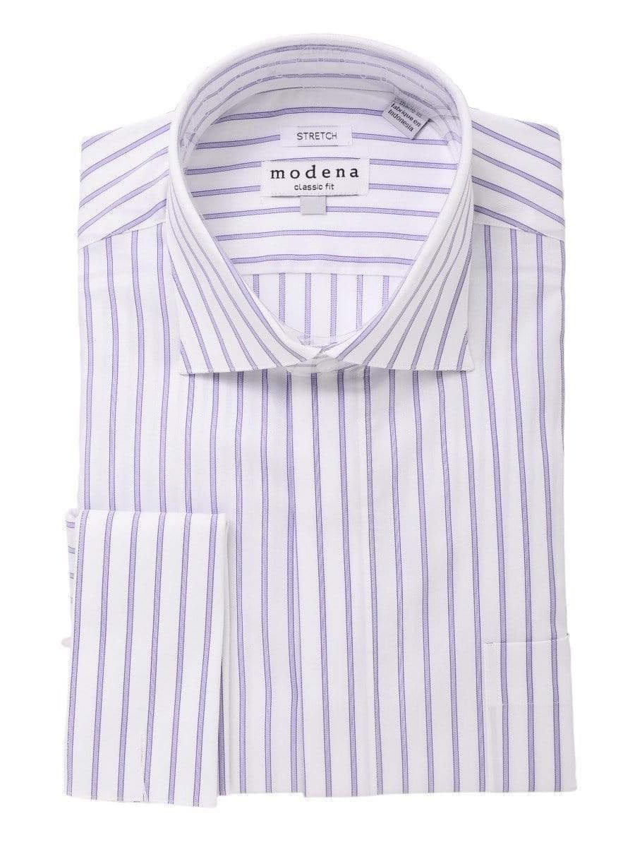 Mens Cotton Blend Purple Striped French Cuff Classic Fit Dress Shirt