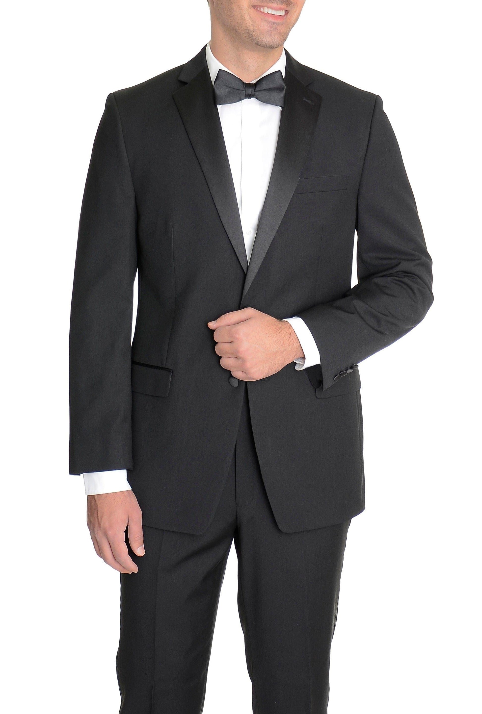 Mens Regular Fit Solid Black Two Button Tuxedo