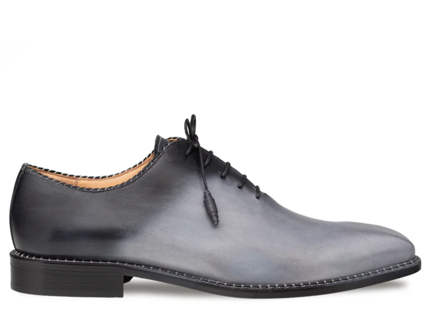 Elevate your formal footwear with the Mezlan Barbaro two-tone grey and black Oxford shoes. Crafted in Spain, they feature a smooth hand-stained patina leather upper with a subtle gradient design. A memory foam insole and leather sole ensure comfort and durability ideal for business, evening wear, or any formal occasion.