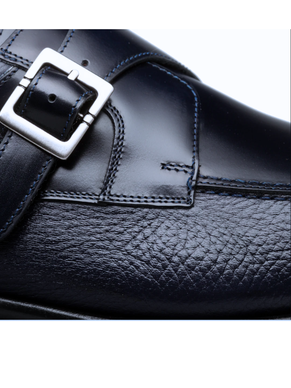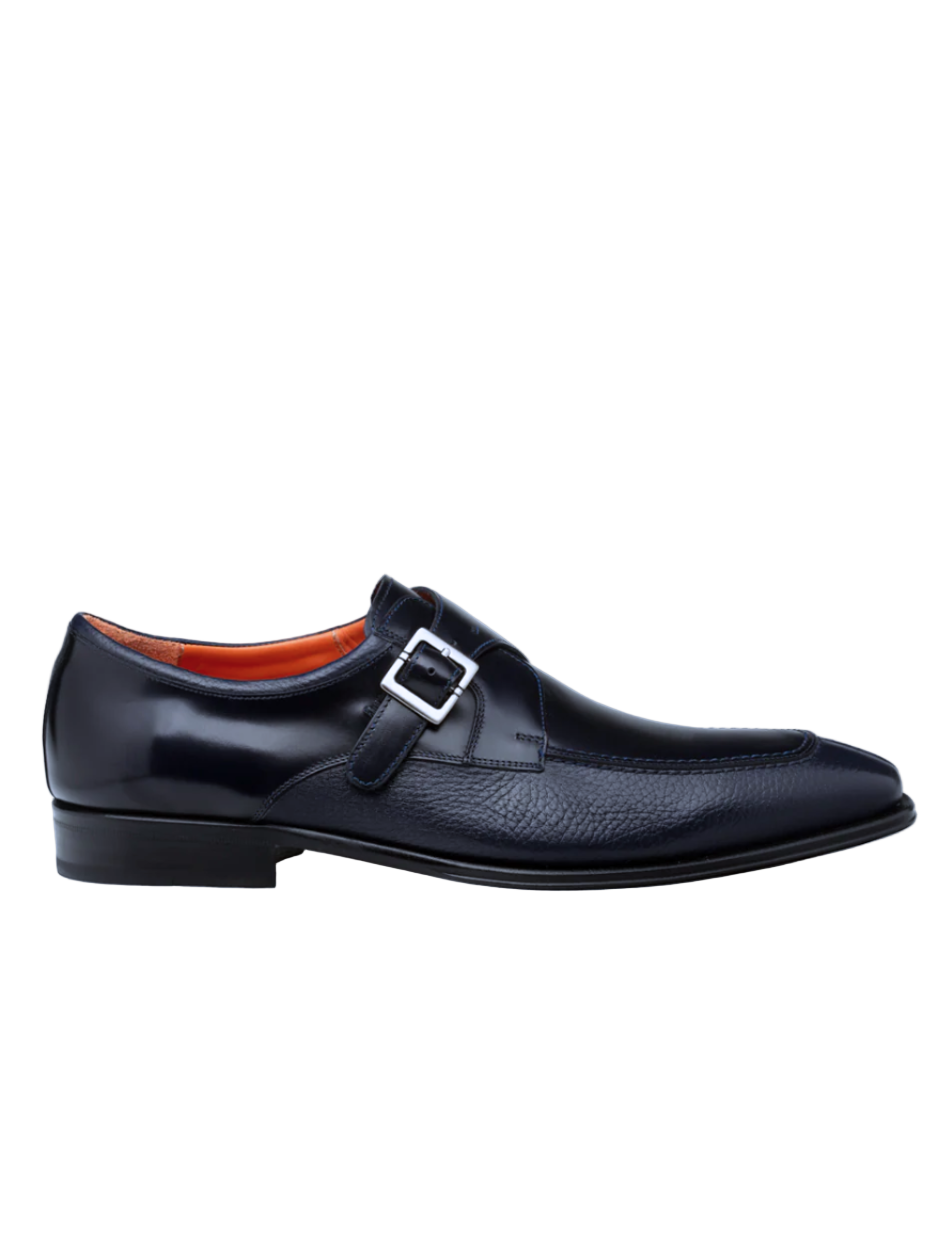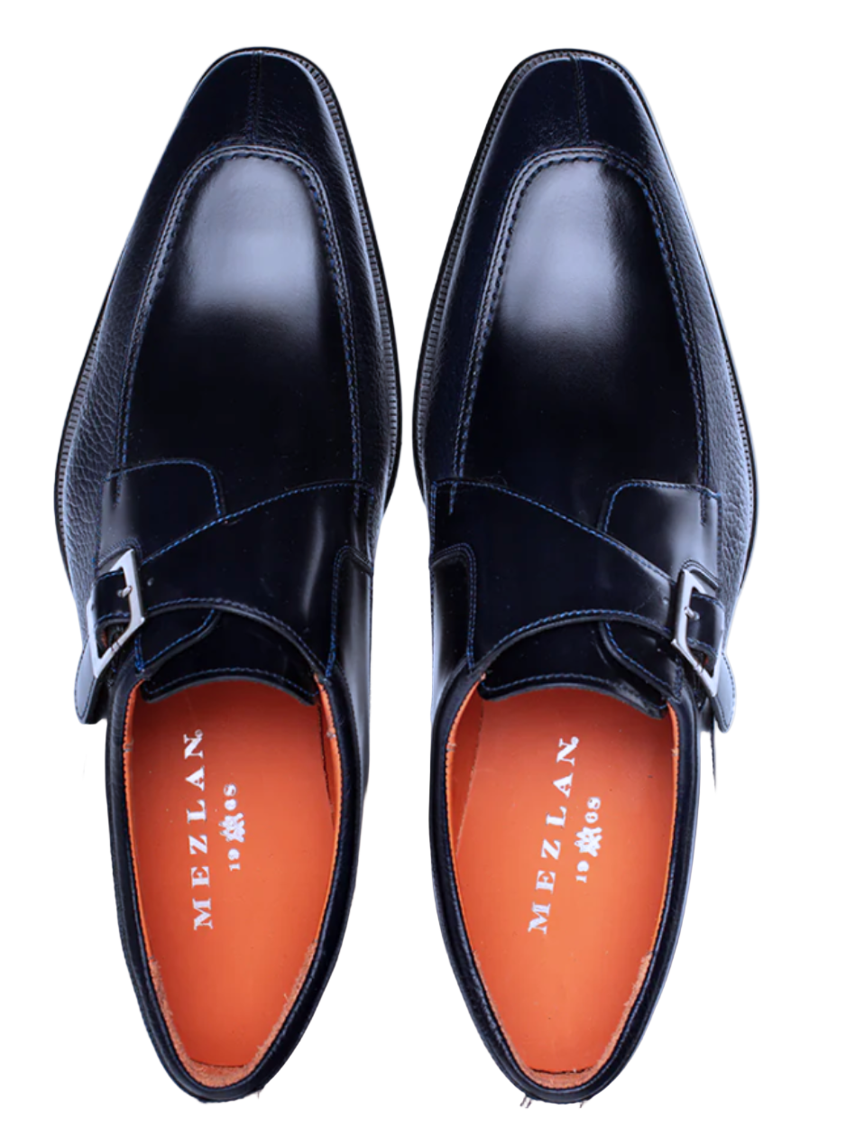 Mezlan Pego Navy Blue Deerskin & Calf Monk Strap Dress Shoes