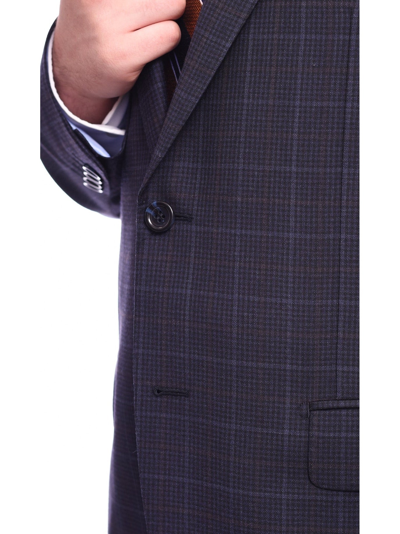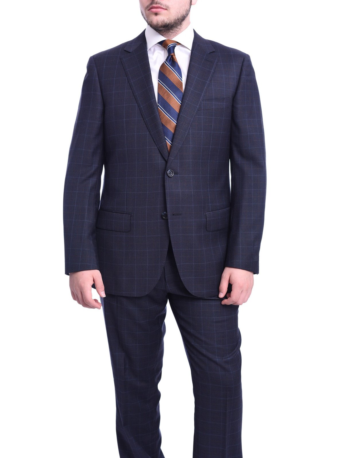 Napoli Classic Fit Blue Windowpane Plaid Half Canvassed Super 150s Wool Suit