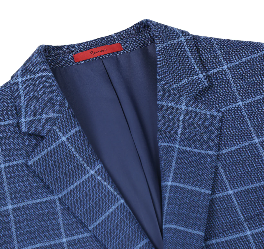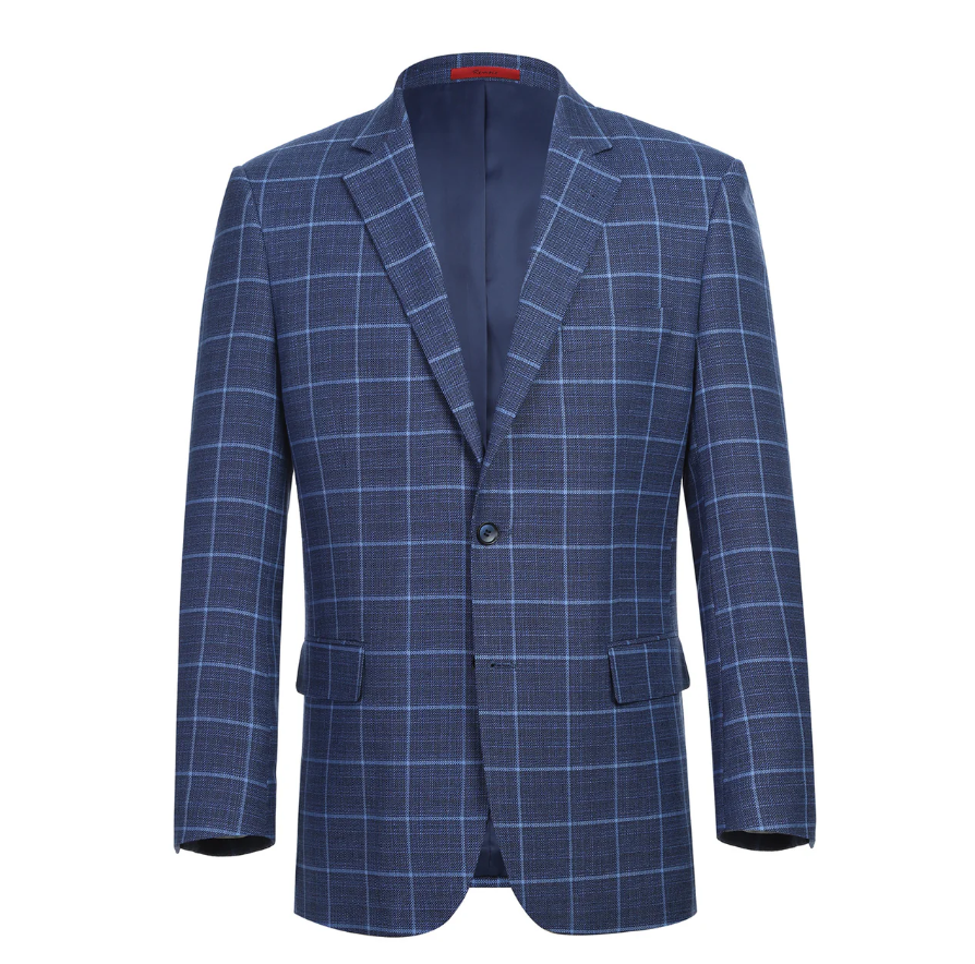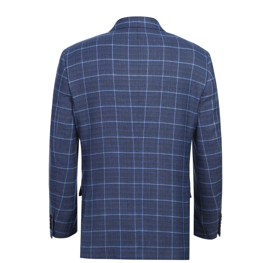 Raphael Blue Windowpane Classic Fit Notch Lapel Stretch Two Button Blazer