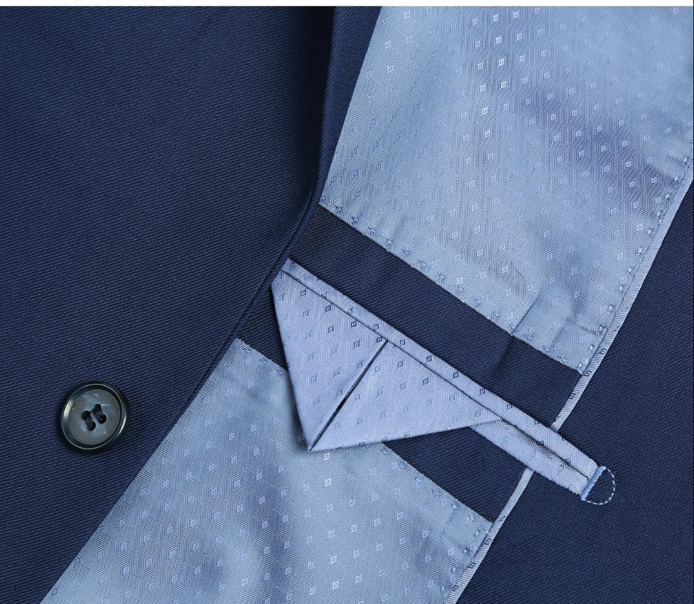 This slim fit navy blue suit, designed for timeless style and all-day comfort. The jacket features a two-button, single-breasted front with sharp notch lapels, flap pockets, and side vents for ease of movement. The coordinating trousers offer a straight-leg cut with a flat front for a clean, refined look. Perfect for both professional settings and formal occasions, this deep navy suit pairs effortlessly with a variety of shirt and tie combinations, making it a versatile staple in any gentleman’s wardrobe.