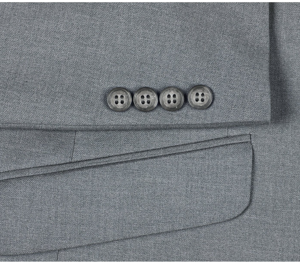 Step out in style with this slim fit light gray suit, crafted for a sleek, modern silhouette. The two-button, single-breasted jacket features sharp notch lapels, flap pockets, and side vents for both elegance and comfort. Matching slim-cut, flat-front trousers enhance the streamlined profile, offering a contemporary look perfect for today’s professional or formal settings. The versatile light gray color pairs easily with crisp white shirts, patterned ties, and a variety of accessories, making it a go-to choice for business, weddings, and special occasions.