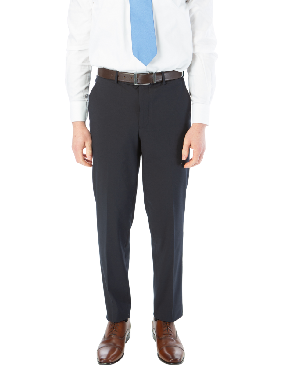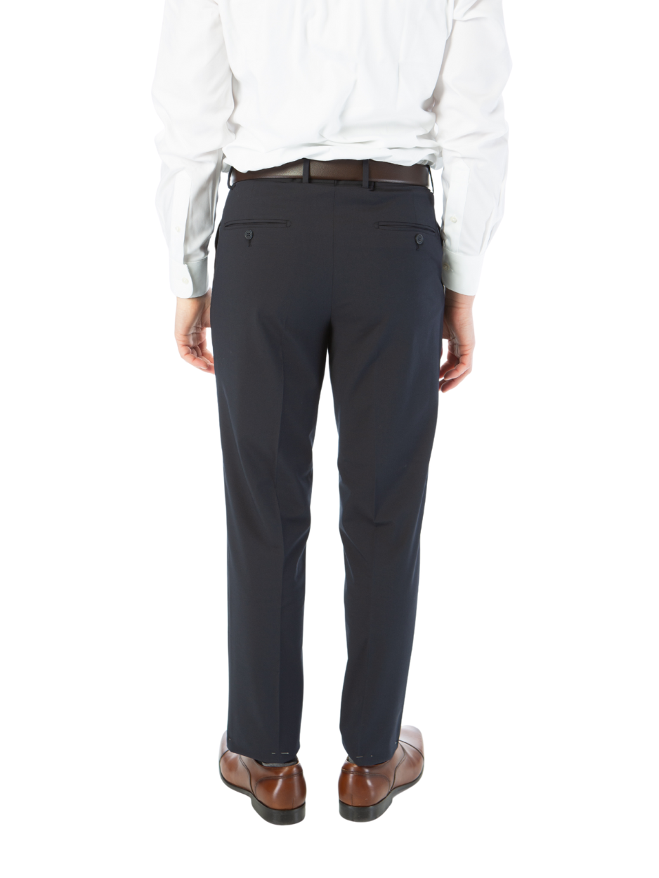 Here is proof that affordable dress pants can be perfectly tailored. Wear these sophisticated navy blue slim fit dress pants for work and social events. These stretch dress pants are constructed from premium wool-touch synthetic fibers. The craftsmanship is impeccable. The seams are extra durable. These are your new go-to pants.