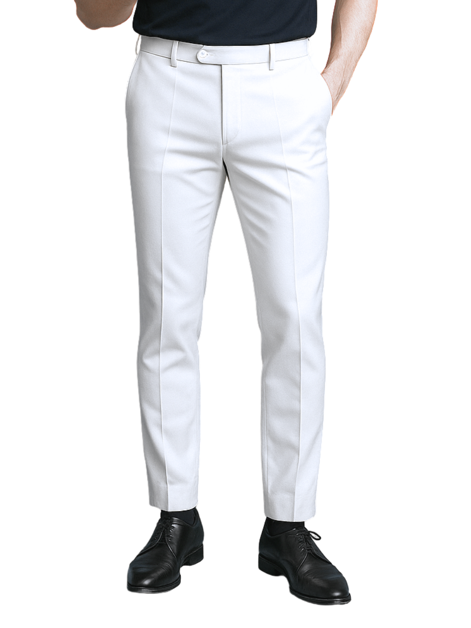 Elevate your formal wardrobe with these white dress pants, tailored from a refined wool-touch fabric. Made from a premium blend of 65% polyester and 35% viscose, they offer the luxurious feel of wool with added breathability and wrinkle resistance. Perfect for weddings, summer events, or modern formal looks—these are your new go-to pants.