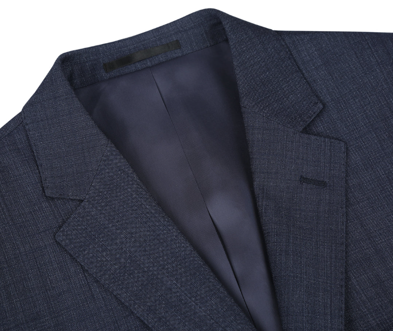 Raphael Navy Textured Notch Lapel Classic Fit Two Button Wool Suit