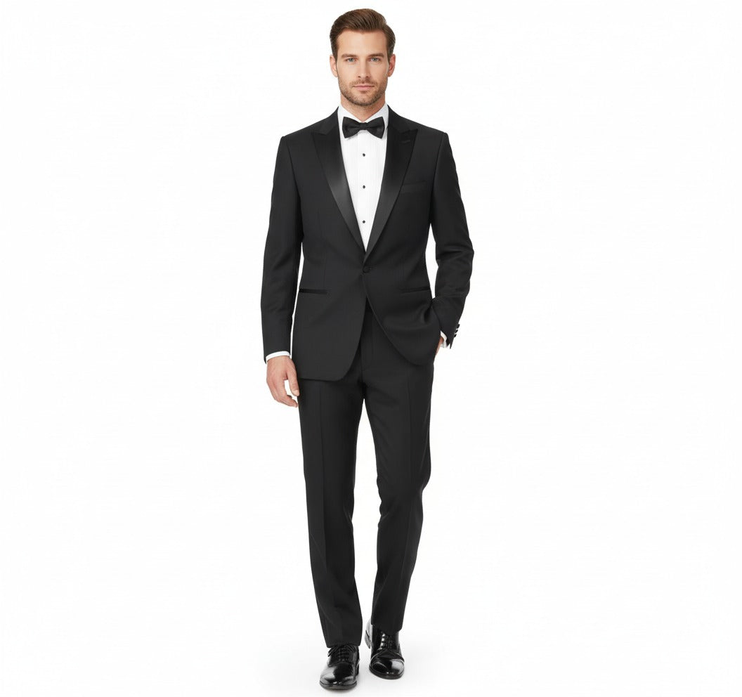 Raphael Solid Black Classic Fit One Button Peak Lapel Tuxedo Suit