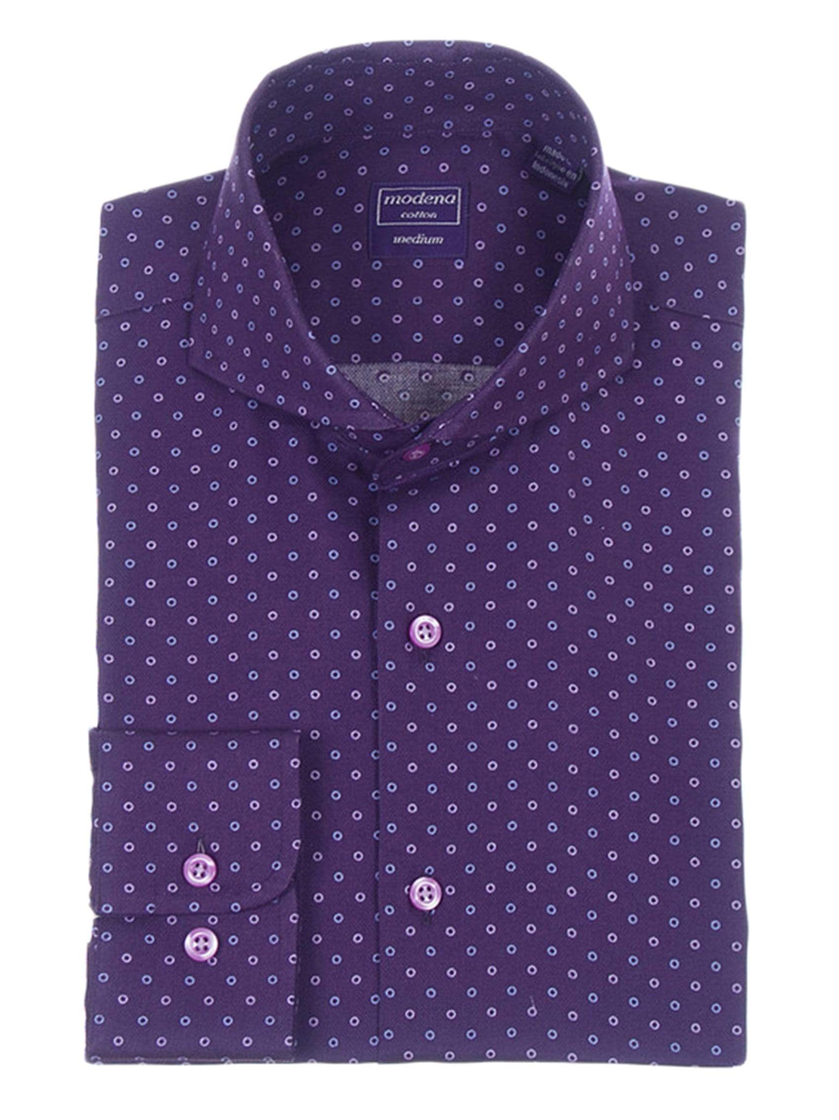 Regular Fit Plum Purple Circle Pattern Cutaway Collar Cotton Dress Shirt