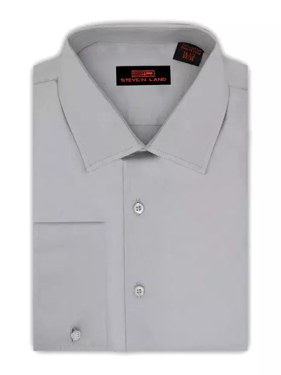 Steven Land Men's 100% Cotton Solid Silver French Cuff Non-Iron Dress Shirt