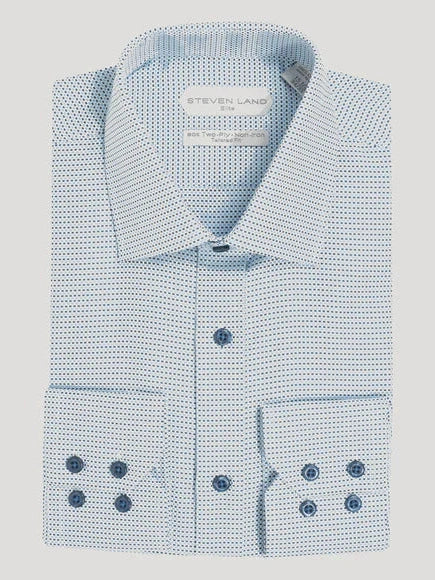 The Steven Land classic fit blue basket weave spread collar shirt is the perfect foundation for suits and blazers, and stands alone with trousers. Its 100% cotton is soft and breathable. Enjoy this classic addition to your wardrobe for years to come.