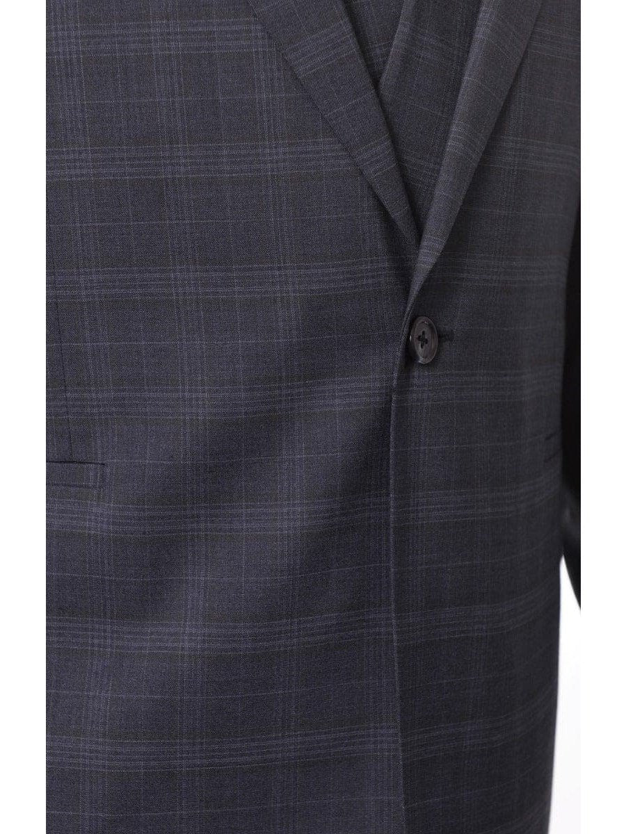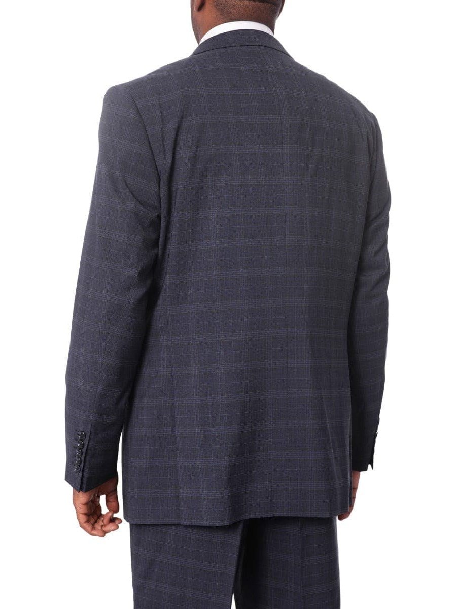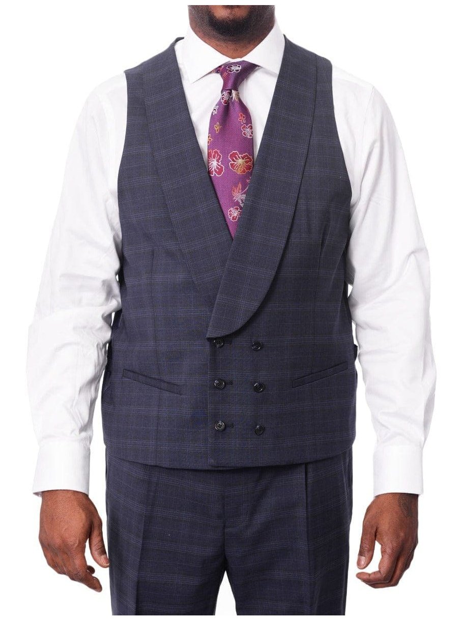 Steven Land Mens Blue Plaid 100% Wool Classic Fit 3 Piece Suit