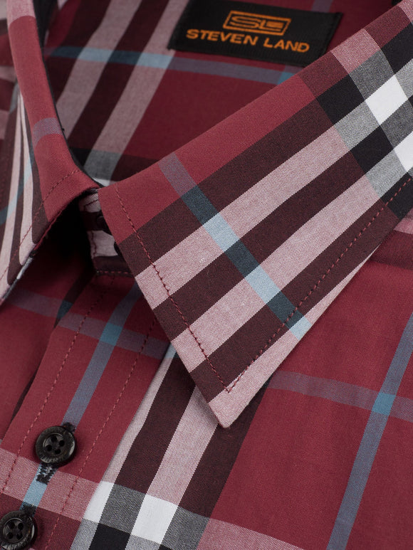 Steven Land Mens Classic Fit Burgundy Plaid 100% Cotton Dress Shirt