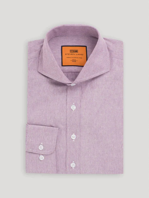 The Steven Land classic fit purple cutaway collar shirt is an excellent match for suits and blazers, and can be worn alone with trousers. Its cotton blend is soft and durable. Enjoy this classic addition to your wardrobe for years to come.