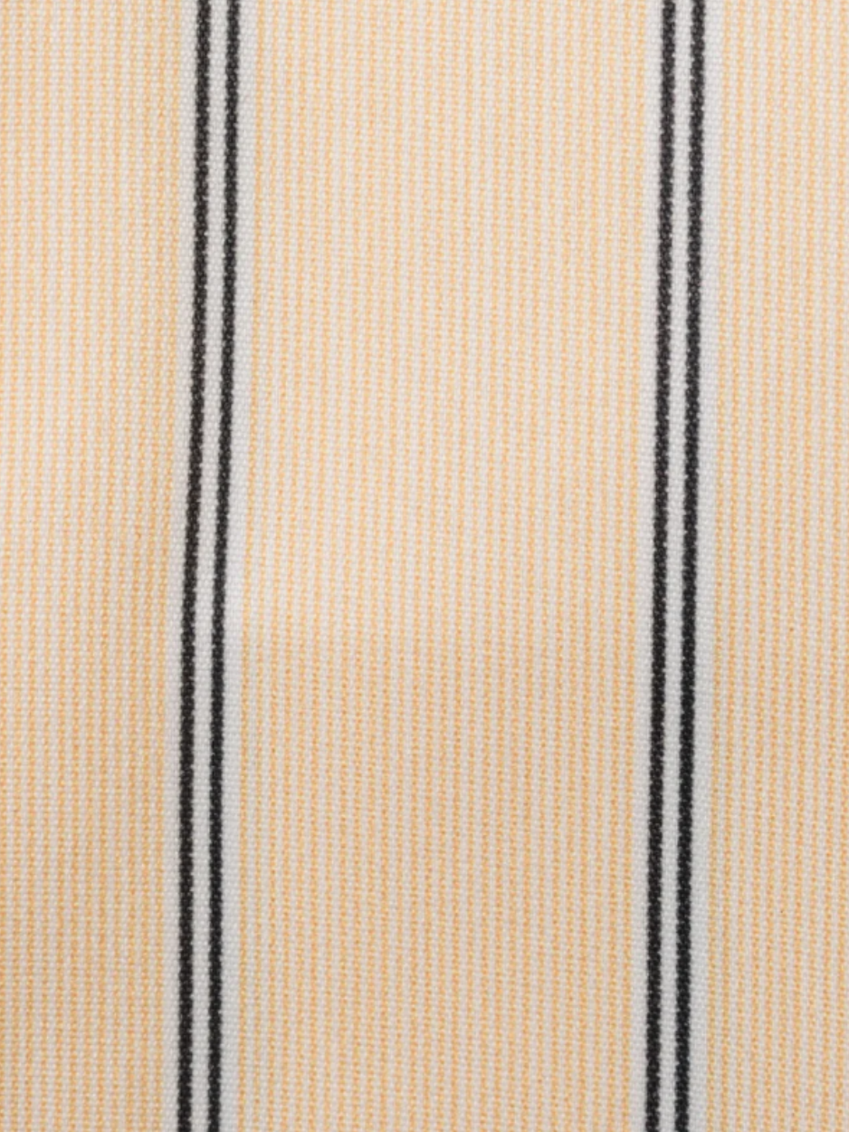 This Steven Land dress shirt features a yellow base woven with subtle vertical pinstripes and accented by navy double stripes that create a clean, structured look. A crisp white contrast collar and matching French cuffs add a sharp, formal edge, ideal for pairing with a suit or blazer. It's perfect for dressing up at formal events or adding character to a sharp business outfit.