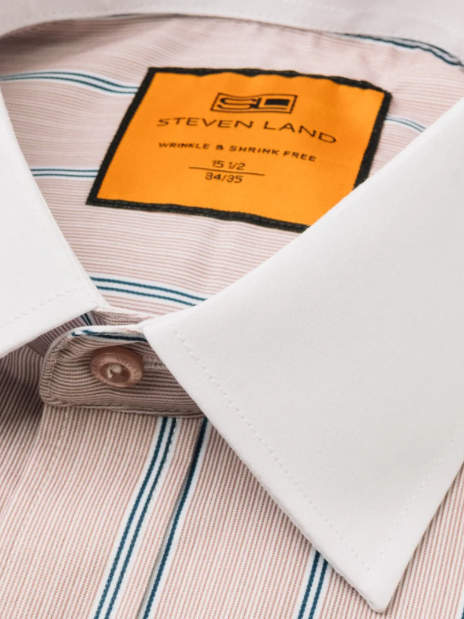 Steven Land Brown Stripe Spread Collar French Cuff Wrinkle & Shrink Free Dress Shirt