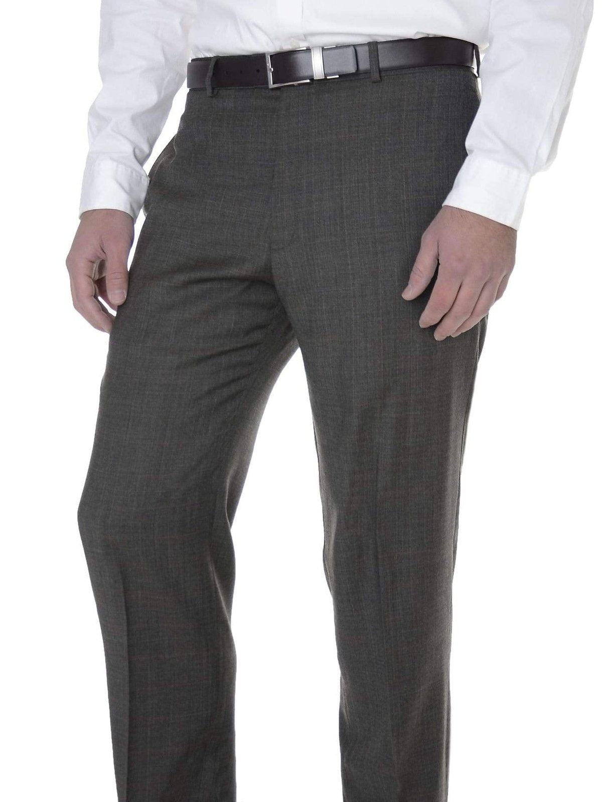 Tasso Elba Mens Olive Plaid Flat Front Wool Dress Pants